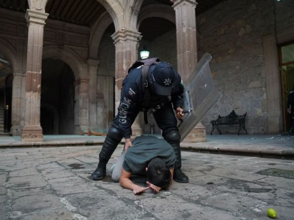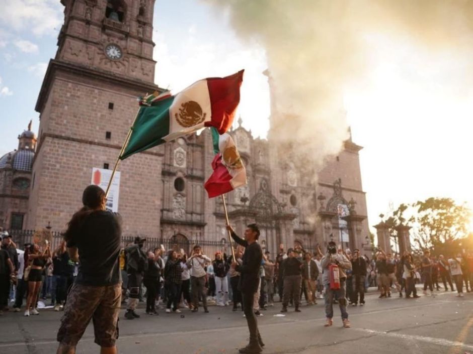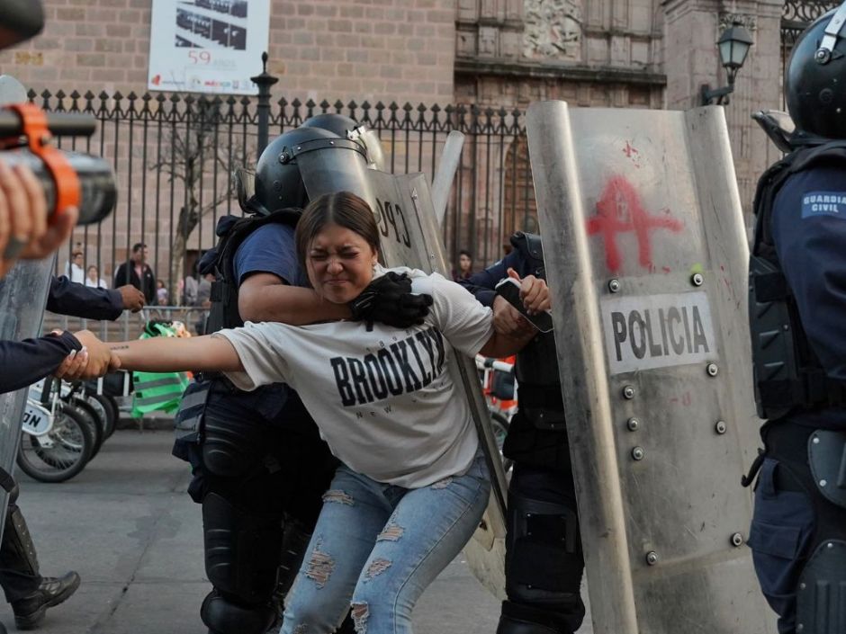 Represión contra manifestantes que piden justicia por el alcalde Carlos Manzo en Michoacán.