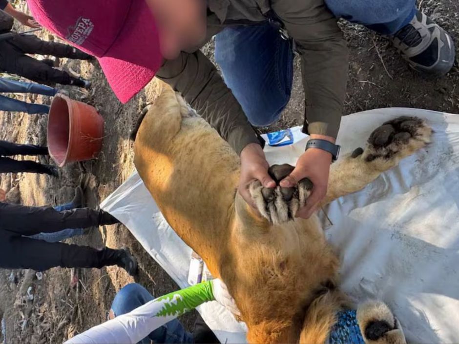 Sin garras y con lesiones Profepa rescata a león amarrado a un árbol en Nayarit