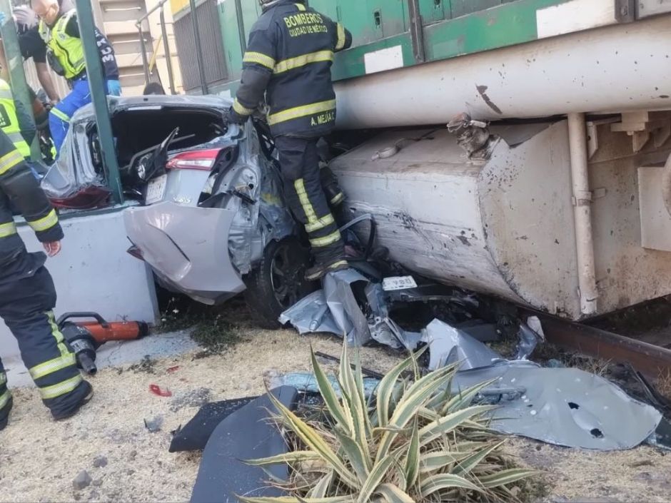 Tren impacta y arrastra automóvil en la GAM; conductor resulta lesionado