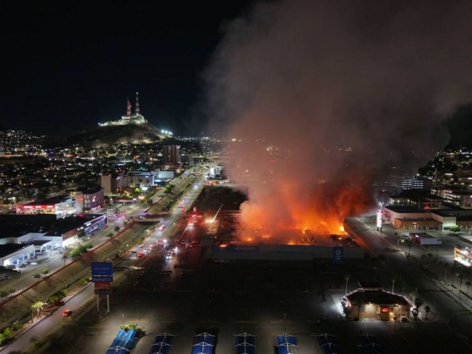 Voraz incendio consume al Sam's Club de Hermosillo, Sonora