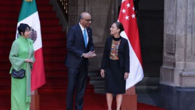 Sheinbaum recibe a presidente de Singapur, Tharma Shanmugaratnam, en Palacio Nacional
