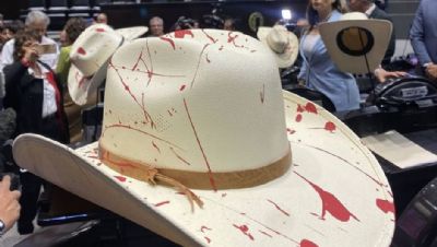 Legisladores guardan un minuto de silencio y colocan sombreros con sangre por asesinato de Carlos Manzo