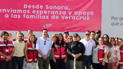 Gobierno de Sonora da banderazo a tractocamión con víveres para damnificados de Veracruz