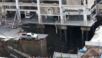 En Bangkok se abre socavón gigante de 50 metros de profundidad