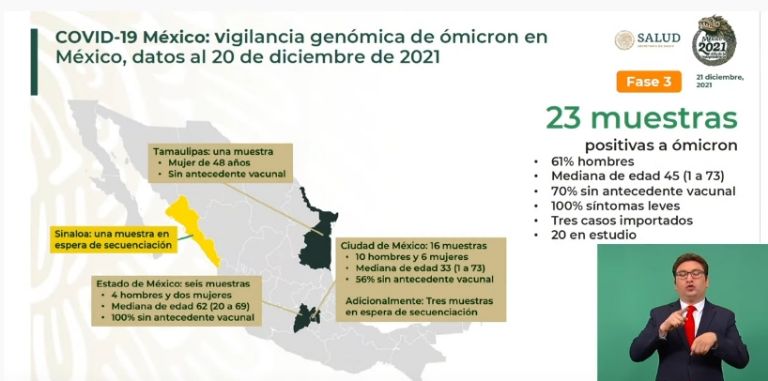 Ciudad de México.- En México hay 23 casos de Covid-19 de la variante Ómicron, todos con síntomas leves, confirmó esta mañana el subsecretario de Salud Hugo López-Gatell durante la conferencia matutina desde Palacio Nacional.