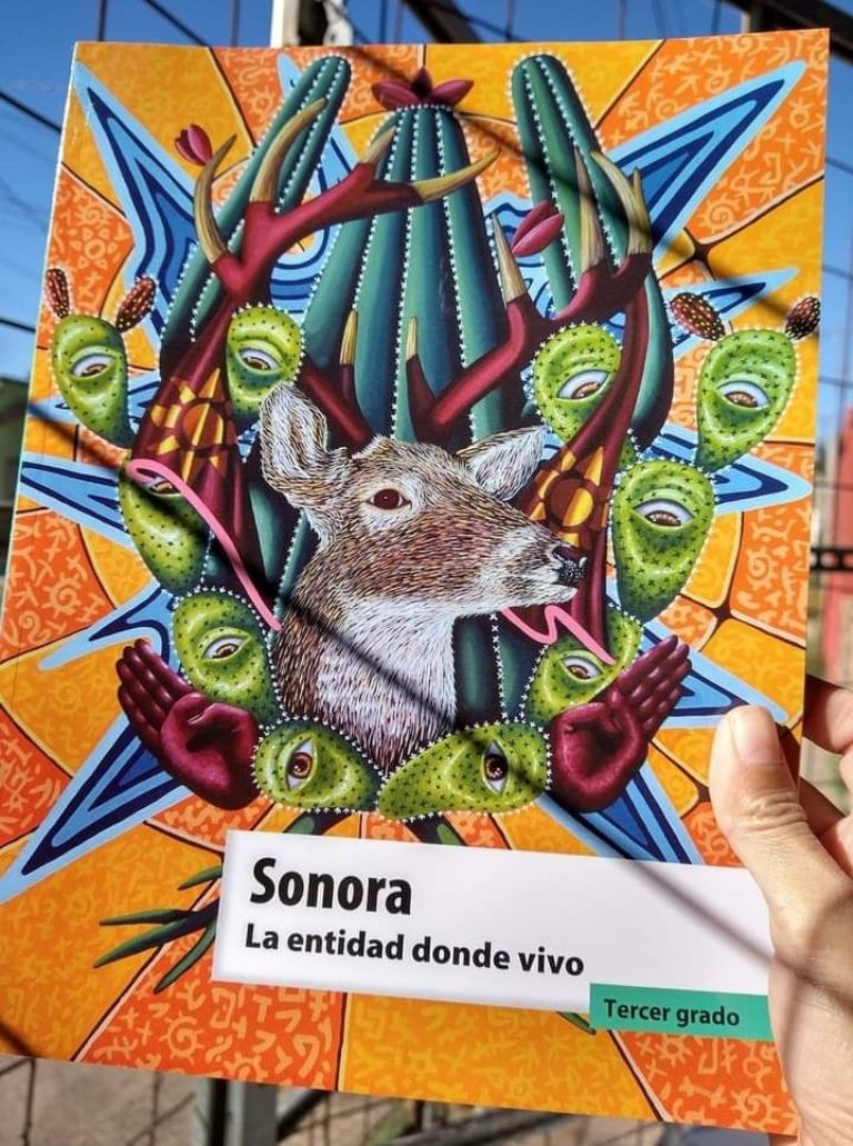 Baja California.- Inspirado en la diversidad de ecosistemas con las que cuenta el estado de Baja California, el artista urbano, Juan Pablo Melchum, mejor conocido como Noche ilustró la portada del libro de texto gratuito para niños de tercer grado de primaria.
