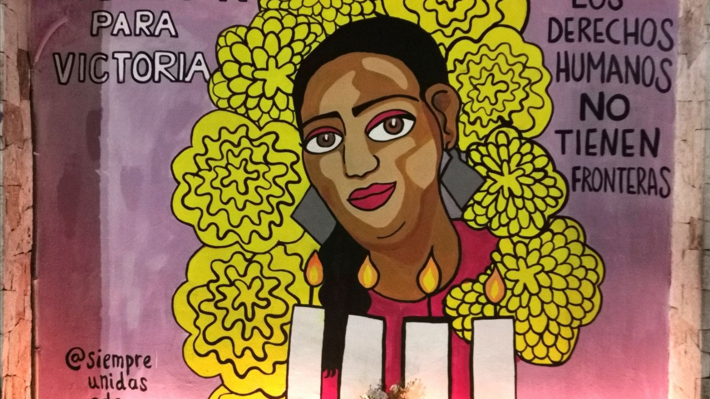 La obra se realizó el pasado 29 de marzo a cargo de grupos y organizaciones feministas. En esta, se apreciaba el rostro de Victoria con la leyenda "los derechos humanos no tienen fronteras", para honrar a la migrante fallecida en manos de la represión policiaca del estado.