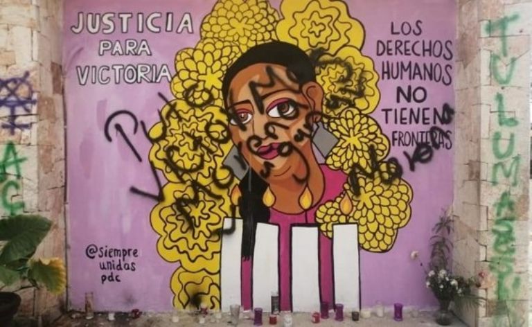 Tulum, Quintana Roo.- Tras el homicidio de la migrante Victoria Salazar cometido por cuatro policías de Tulum, colectivas feministas pintaron un mural en su memoria, sin embargo, este 3 de abril, tan solo cinco días después de su creación, fue destruido con mensajes contra políticos.