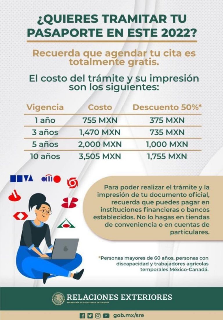 Es importante mencionar que a partir del 1 de enero del 2022 los costos del pasaporte se incrementaron y dependerá de la vigencia que se requiera el monto que hay que cubrir antes de acudir a la cita.