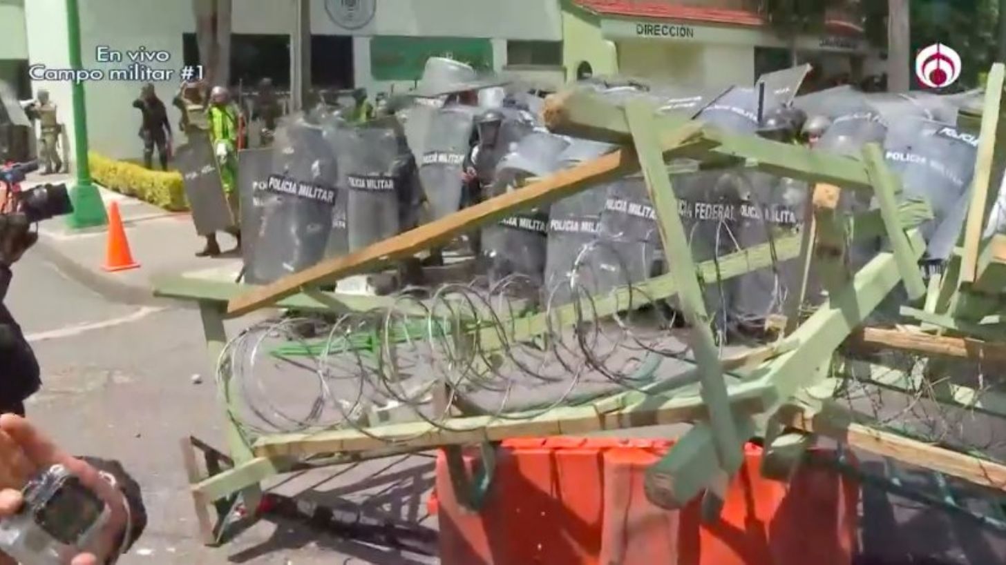 Ciudad de México.- Esta tarde presuntos normalistas de Ayotzinapa protagonizaron una protesta violenta frente a las instalaciones del Campo Militar 1, en las inmediaciones de la salida a Toluca sobe la Avenida Constituyentes. Los sujetos realizaron destrozos, hicieron pintas, lanzaron petardos, bombas de humo y hasta el momento, se reportó el derribo de cuatro rejas del campo militar, sin embargo, los manifestantes no lograron entrar a las instalaciones militares.