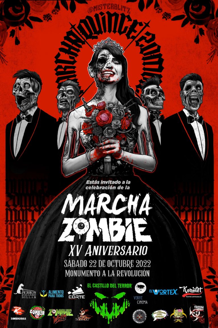 Ciudad de México.- La Marcha Zombie de la Ciudad de México regresa después de dos años en pausa por la pandemia de Covid-19, por lo que este 2022 celebra sus XV años con todo y la tradicional quinceañera junto a sus chambelanes, además, planea realizar una celebración en grande, y como toda celebración, los asistentes deberán disfrazarse para desfilar por las calles de capital mexicana, cuya movilización partirá del Monumento a la Revolución.