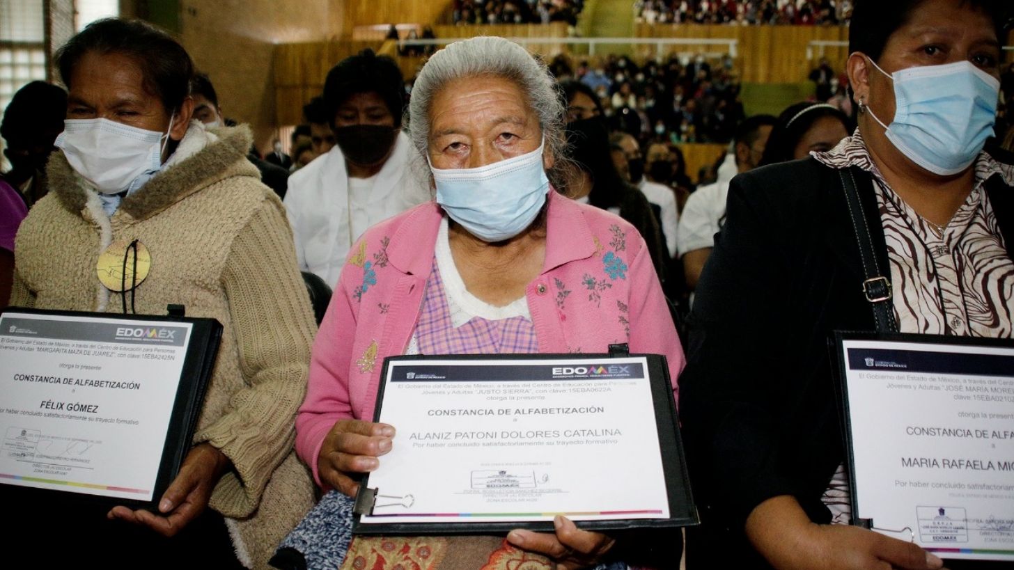 En el Día Internacional de la Alfabetización 2022, el Gobierno del Estado de México, a través de la Secretaría de Educación, que encabeza Gerardo Monroy Serrano, entregó Constancias de Alfabetización y Certificados de Educación Primaria y Secundaria en beneficio de más de 5 mil estudiantes y sus familias. La Secretaría de Educación atiende a más de 50 mil jóvenes y adultos en condición de rezago educativo en mil 057 Centros de Educación para Personas Jóvenes y Adultas (CEPJA),