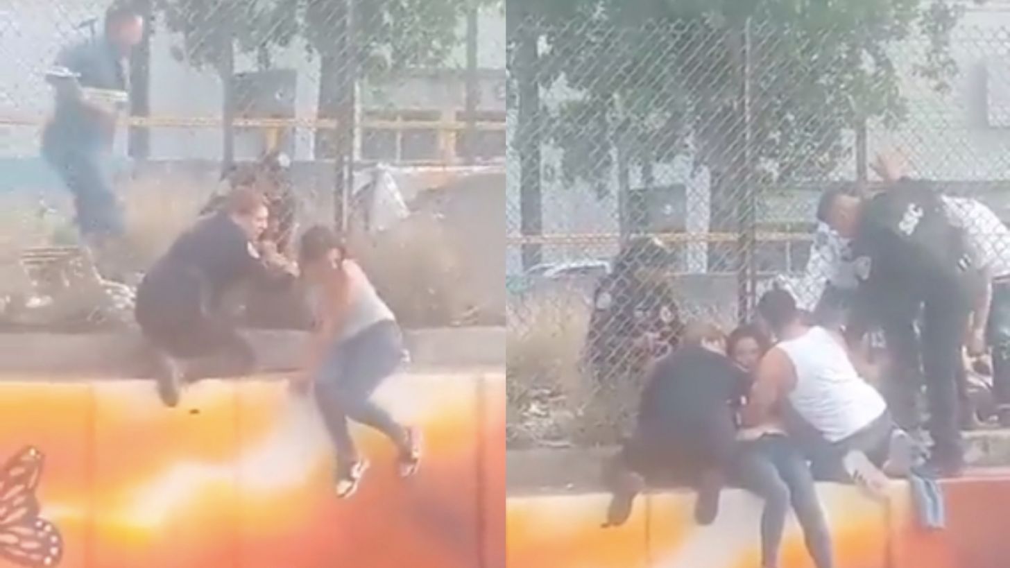 No te avientes!", "Agárrala compañera", o "échala más hacia atrás", fue lo que se escucha mientras trataban de poner a la joven a salvo.
