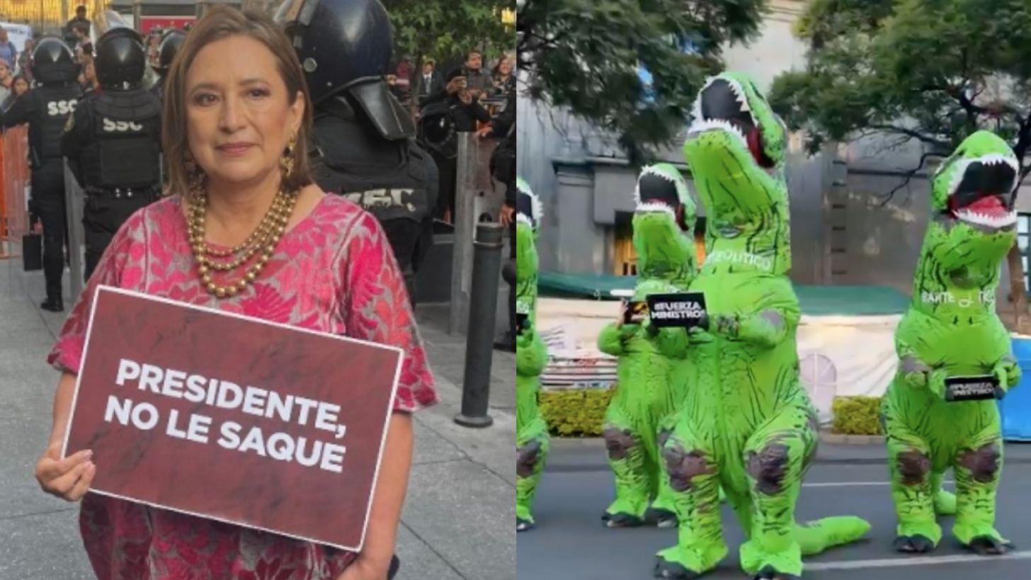 En la plataforma social Twitter, la senadora panista compartió una fotografía donde posa junto a cinco personas más, todos usando la misma botarga de dinosaurio, al tiempo que cargan imágenes con la portada de la cinta Jurassic Park cuyo mensaje dice "Fuerza Ministros". El motivo de su protesta no es por querer ingresar de nueva cuenta a 'La Mañanera', sino que está vez recordó que la Suprema Corte de Justicia de la Nación (SCJN) se encuentra a un paso de declarar inconstitucional la reforma impulsada por AMLO donde ella asegura, "pretende regresar a los dinosaurios de elecciones fraudulentas", de ahí la vestimenta.