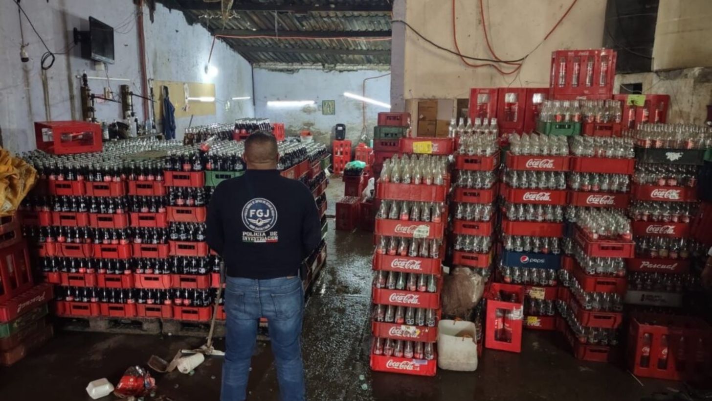 La Paz, Estado de México.- Mediante acción operativa conjunta, agentes de la Fiscalía General de Justicia del Estado de México (FGJEM), de la Secretaría de la Defensa Nacional (SEDENA) y de la Guardia Nacional (GN), fue asegurada una fábrica clandestina de refresco adulterado supuestamente de Coca-Cola, la empresa refresquera que produce esta bebida de cola; además fueron detenidas 10 personas.