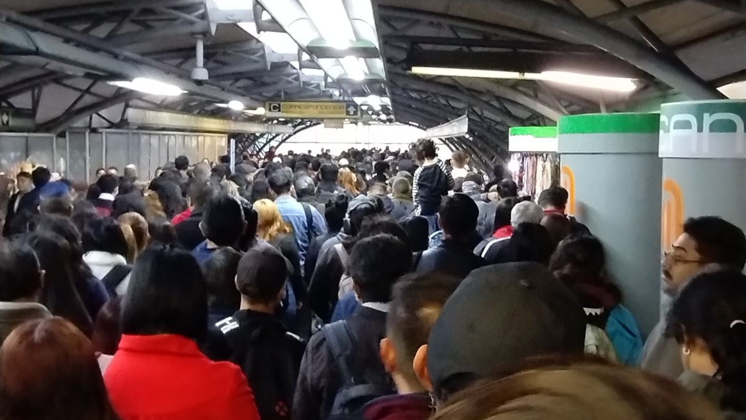 Usuarios en redes sociales reportan asentamiento de personas en las escaleras del trasborde de Línea 5 a Línea B en la estación Oceanía. La red del transporte público informó que el máximo retraso era de solo cinco minutos, lo que desencadenó una ola de críticas por parte de los usuarios en las redes sociales, quienes vivían la realidad de lo que se registraba en el Metro capitalino.