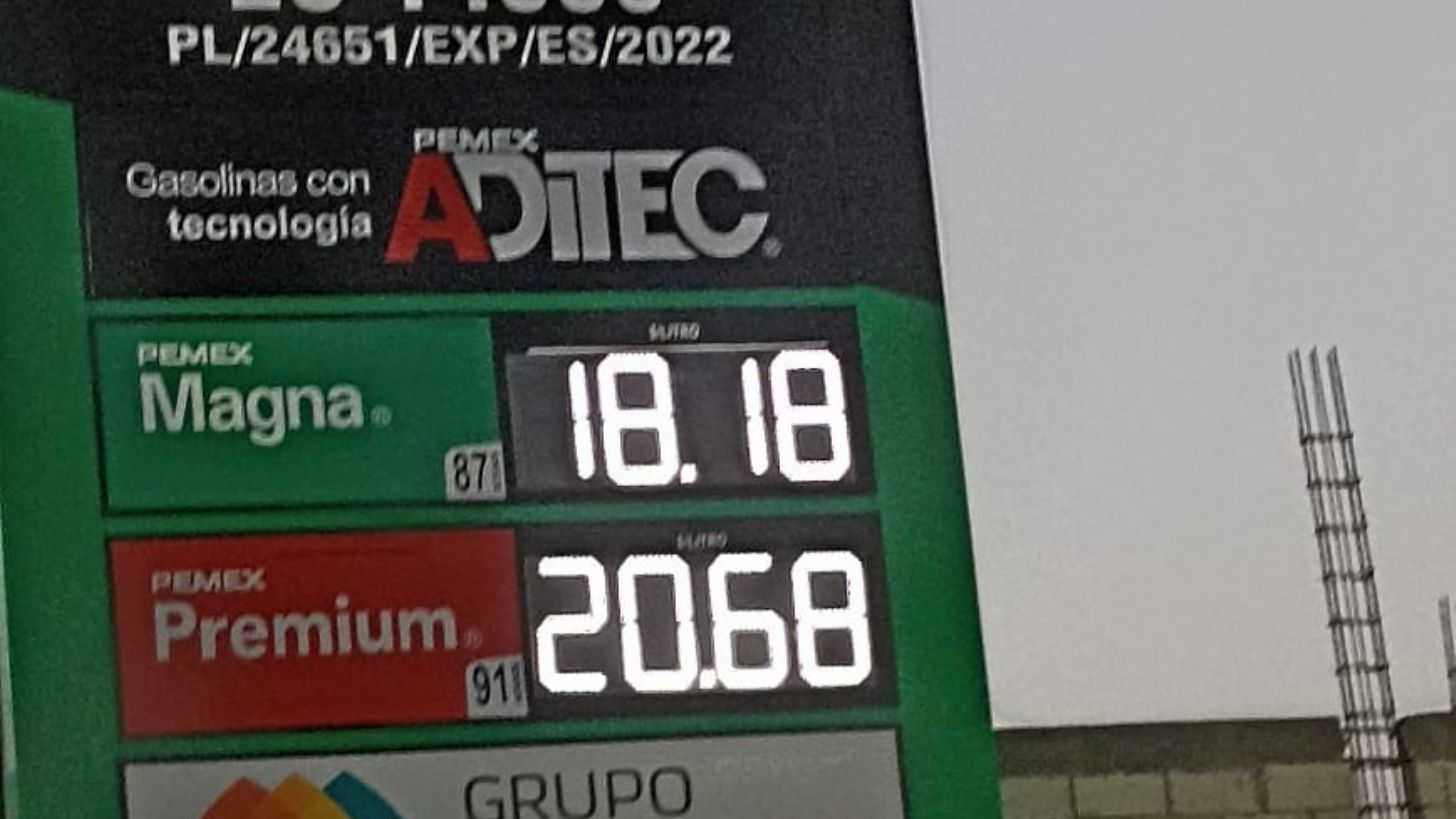 La gasolina regular, es decir la Magna, se encuentra en un promedio de 22.127 pesos por litro.