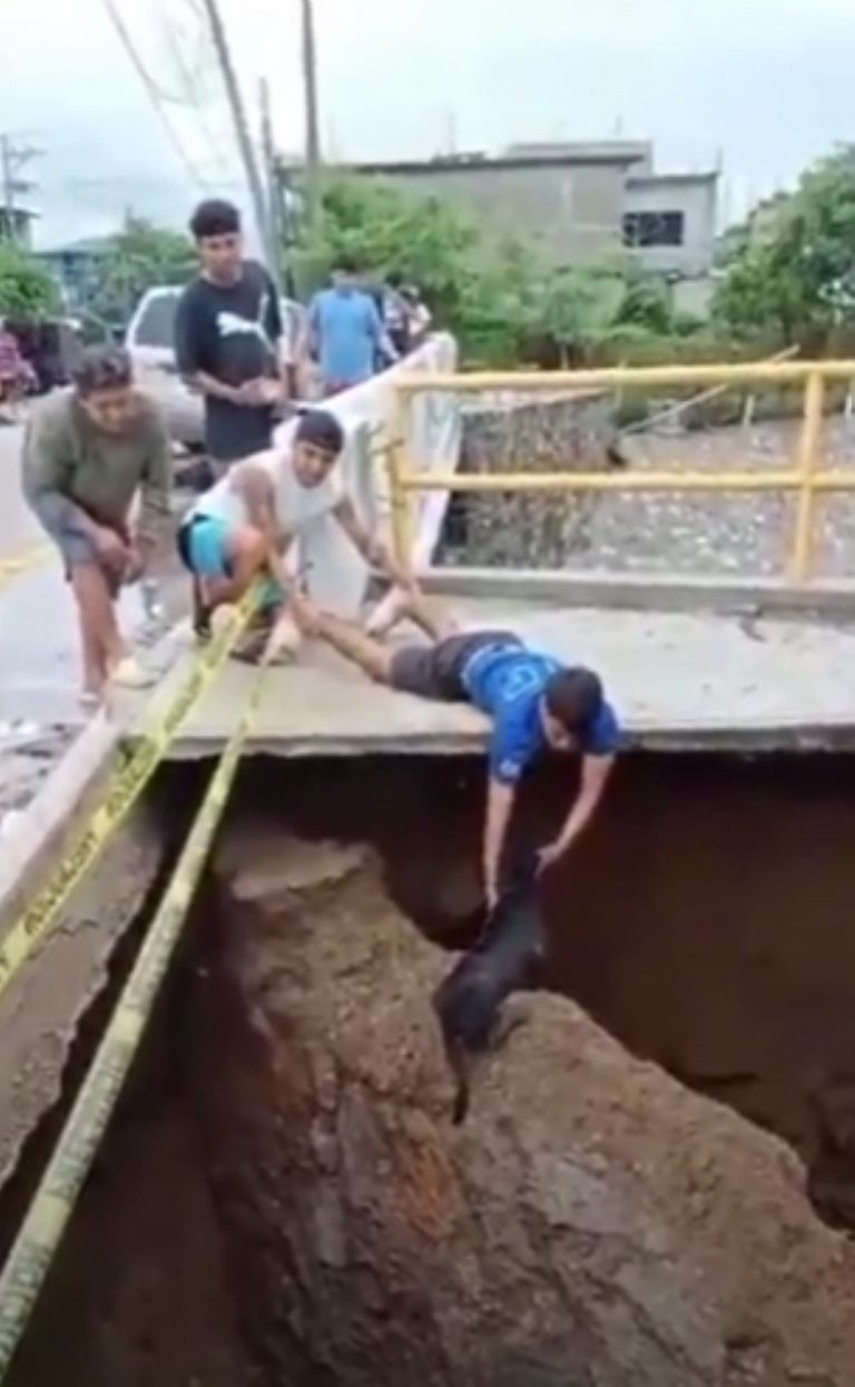 Pedro mostró que la profundidad de la inundación sobrepasa los dos metros, pero esta condición no es un impedimento para recorrer las vías públicas con ánimo de extenderle la mano a quien lo necesite. En una grabación documentó su paso por las calles completamente cubiertas por agua café. En su viaje se encuentra a distintos perritos en situación de riesgo, desde uno acorralado sobre una pequeña columna de cemento, incapaz de bajar de ella, otro más atrapado dentro de una camioneta inundada y hasta un lomito que se había caído en un socavón.