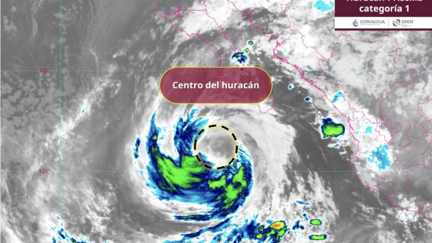 De acuerdo con el Servicio Meteorológico Nacional (SMN) y la Comisión Nacional del Agua (Conagua), el centro del huracán se localiza a 310 kilómetros al suroeste de Cabo San Lucas, Baja California Sur, y a 685 kilómetros al oeste de Cabo Corrientes, Jalisco. Actualmente, se desplaza hacia el noroeste a una velocidad aproximada de 13 kilómetros por hora, con vientos sostenidos de 130 kilómetros por hora y rachas que alcanzan los 150 kilómetros por hora. La presión mínima central registrada es de 979 hPa.