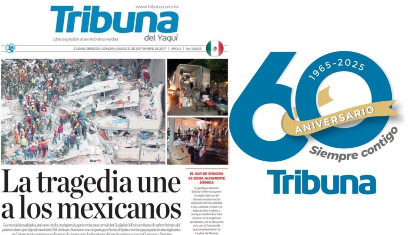 "Caos, muerte y destrucción causó el sismo en el D.F.", "pánico generalizado, dolor y cuantiosos daños", "difícil por lo pronto fijar el número de víctimas". Fue el titular en portada de Tribuna el Yaqui, durante la edición 7541 del día viernes 20 de septiembre de 1985, para informar los primeros reportes de los cuantiosos daños que había dejado el movimiento telúrico más intenso en la historia de México. "Balance trágico: Mil atrapados, 3 mil damnificados", "un amplio sector fue declarado zona de desastre" y "momentos de angustia y dolor vivieron los capitalinos". Sin duda alguna, fue una parte de la historia del país que ha marcado a generaciones.