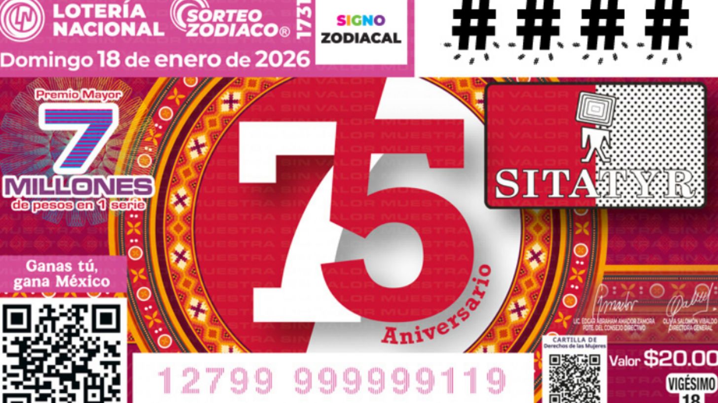 Ciudad de México.- Hoy es domingo de Sorteo Zodiaco en la Lotería Nacional y si tú, al igual que millones de mexicanos, estás concursando, TRIBUNA trae para ti la lista completa de ganadores de este 18 de enero de 2026. Hoy se celebra el Sorteo Zodiaco No. 1731, que hace alusión a los 75 años del Sindicato Industrial de Trabajadores y Artistas de Televisión y Radio, Similares y Conexos de la República Mexicana (Sitatyr).