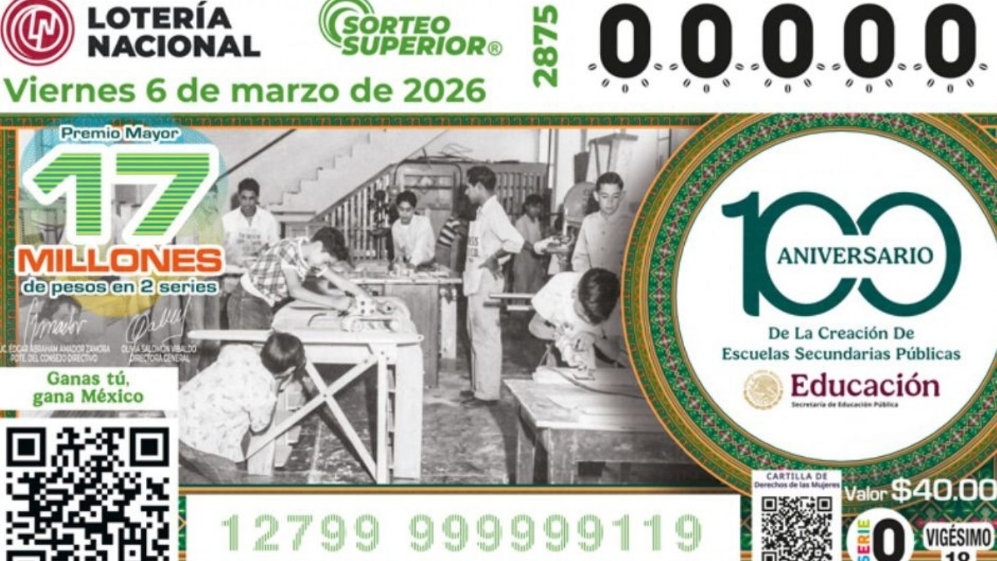 Ciudad de México.- Si estás interesado en conocer al ganador del Premio Mayor del Sorteo Superior en la Lotería Nacional porque compraste boleto y podrías ser uno de los miles de premiados, quédate a leer TRIBUNA porque a continuación te compartiremos la lista COMPLETA de ganadores de hoy viernes 6 de marzo de 2026. Como se sabe, este día se realiza el Sorteo Superior número 2875, el cual celebra que este año la escuela secundaria mexicana cumple cien años.