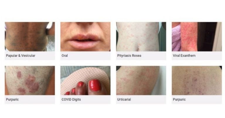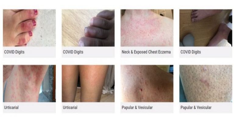Dentro del estudio se analizaron los casos de más de 400 pacientes de Covid-19 que compartieron las imágenes de sus malestares en la piel, y los más comunes son: