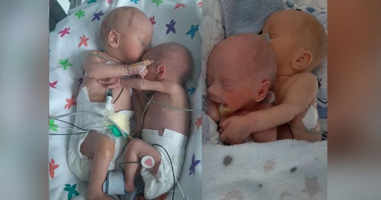 Liverpool, Inglaterra.- Una bebé prematura que los médicos temían no sobreviviría comparte un adorable abrazo con su hermano gemelo después del tratamiento en incubadoras separadas.