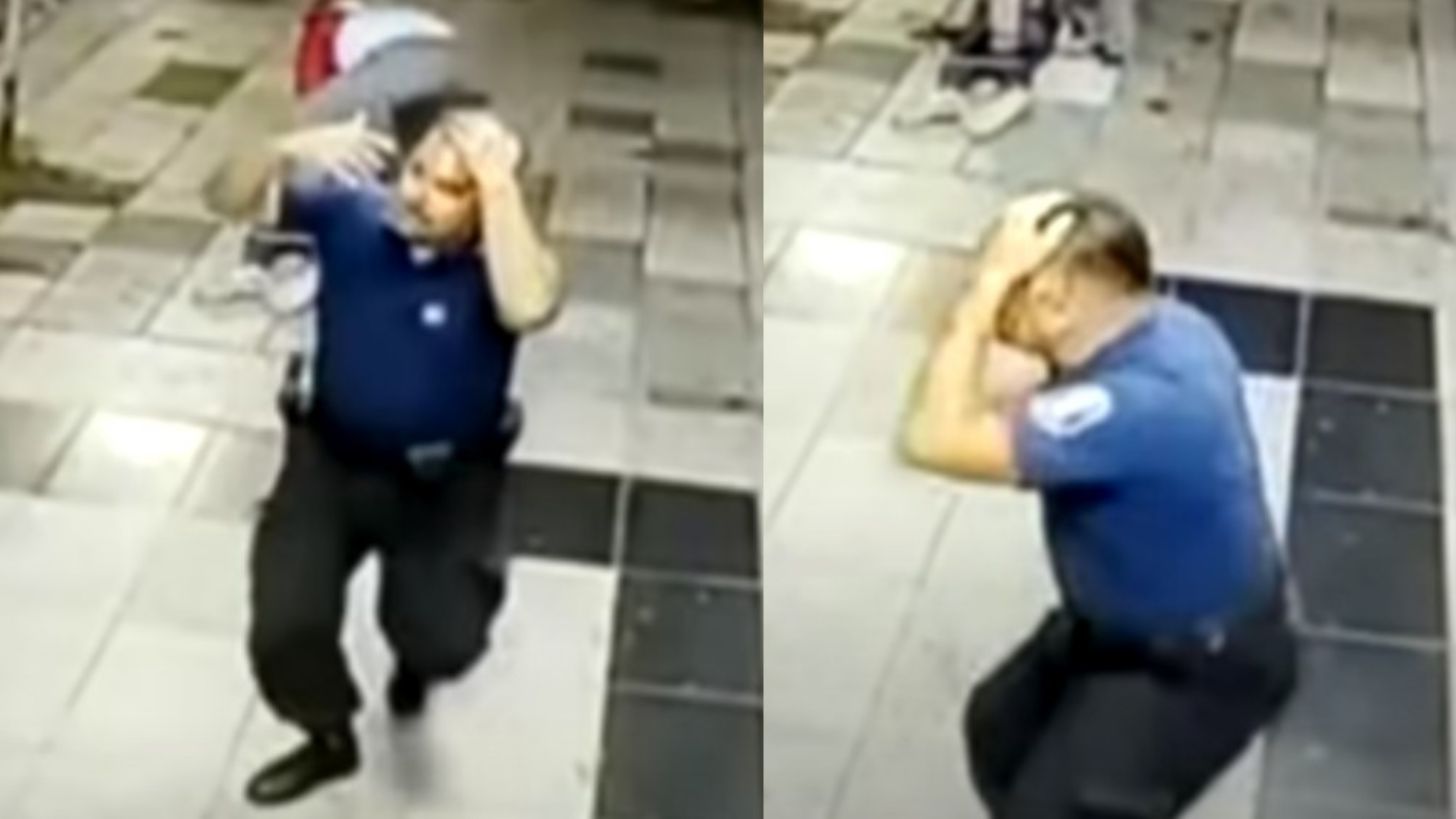 El agente recibió un disparo en la cabeza, sin embargo, al principio no se percató de la seriedad de su herida. En las imágenes captadas por las cámaras, se puede ver cómo el policía herido tiene sometido al delincuente pero al empezar a sentir dolor en la cabeza le pide ayuda a un repartidor que pasaba por el lugar para esposarlo.