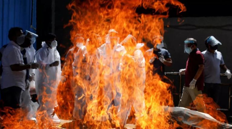 Nueva Delhi, India.- India ha tenido una mala racha en contagios y muertes por la pandemia del Covid-19, tanto es así que se han filtrado fuertes imágenes de crematorios improvisados fuera de los hospitales, noticias como que están enterrando a los muertos en los jardines de los hogares se han vuelto muy cotidianas en ese lado del mundo.