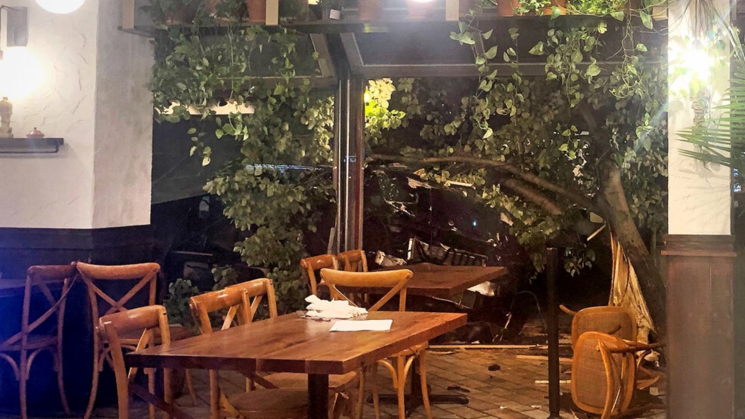 Un testigo que estaba dentro de un Uber dijo que la conductora de la SUV iba a unos 80 kilómetros por hora cuando se fue de frente contra el local de comida.
