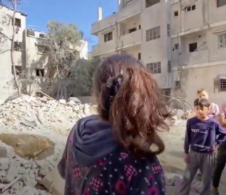 Franja de Gaza, Palestina.- Una niña palestina hizo una súplica desgarradora entre los escombros causados por los ataques aéreos en Gaza, gritando "¿por qué nos merecemos esto?"