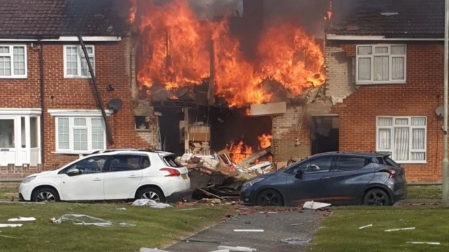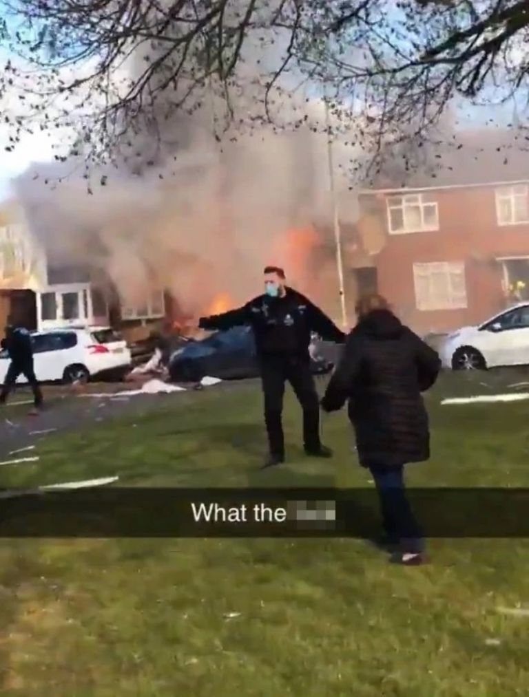 Los vecinos asustados dijeron que la gran explosión dejó un "volcán de rocas" mientras los servicios de emergencia se apresuraban a tratar a siete personas heridas después de la presunta explosión de gas.