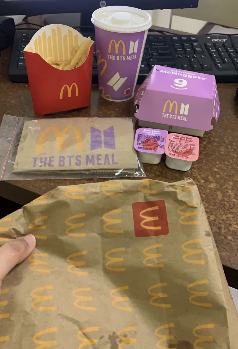McDonald's lanzará The BTS Meal en otras cadenas del mundo la próxima semana; la comidade BTS incluye nuggets, un refresco, papas fritas y dos salsas.