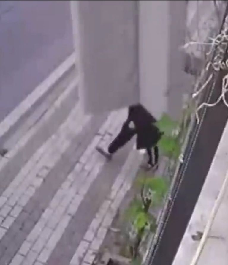 El incidente fue registrado por la cámara de seguridad del edificio. En la grabación se ve a una mujer saliendo del edificio justo cuando el sofá se cae por la ventana, y ella escapó de ser aplastada hasta morir debajo del sofá por segundos.