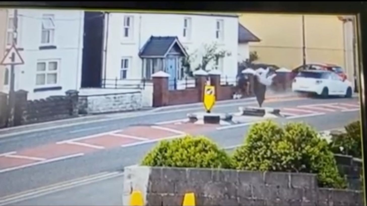 Ammanford, Gales.- Imágenes impactantes muestran el aterrador momento en que un presunto conductor ebrio arrojó al aire a un modelo de OnlyFans.