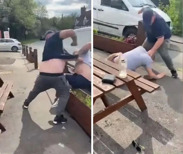 Se cree que el inquietante incidente tuvo lugar fuera de The Village Inn en Beoley, y las imágenes se compartieron en línea el 3 de junio. En el video, el hombre pasea casualmente por el jardín soleado mientras su desprevenido "amigo" se sienta a beber con un grupo de amigos.