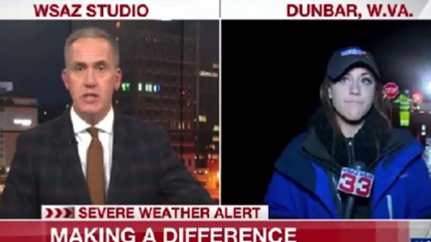 Durante el enlace, el presentador Tim Irr estaba informando sobre un desperfecto en una tubería y al momento de ir en vivo con la reportera el auto pasa detrás de ella y la embiste.