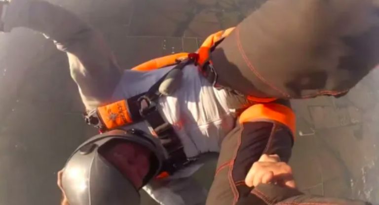 Andy Locke, nombre con el que se identificó el instructor, compartió el video del momento exacto en que se da el choque entre ambos paracaidistas, pues contaba con una cámara de video en su casco que permitió a la vez, revelar su hazaña para salvar a su compañero.