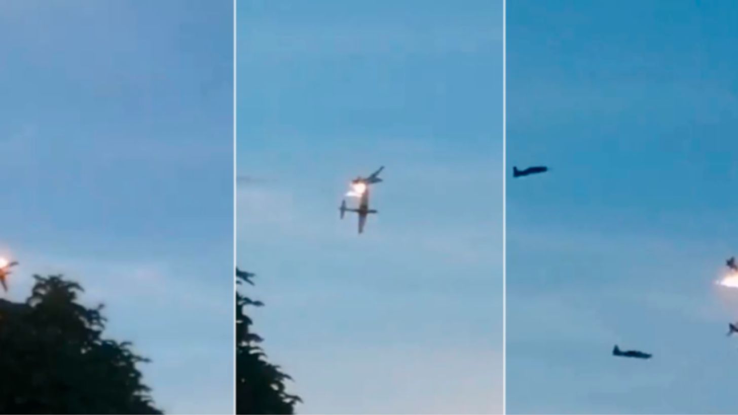 Apiay, Colombia.- La noticia sobre el choque entre dos aviones de la Fuerza Aérea de Colombia estremeció al mundo entero, pues las dos aeronaves se estrellaron en el aire y provocaron que uno de los pilotos perdiera la vida. Ahora, en redes sociales se ha compartido el video del momento exacto en que los vehículos aéreos colisionan y después se desploman para terminar destrozados en tierra.