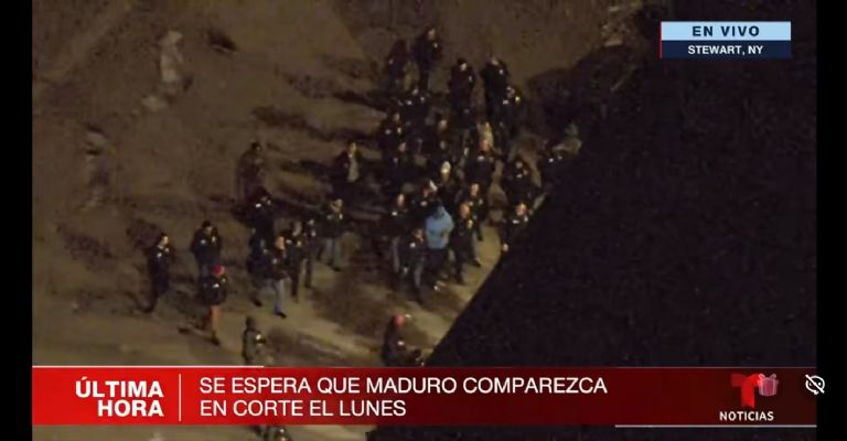 Se trata de las primeras fotos de Nicolás Maduro en Estados Unidos tras haber sido capturado; ambos llegaron a la base de la Guardia Nacional Aérea Stewart, al norte de la ciudad de Nueva York, para enfrentar cargos por terrorismo y narcotráfico, así como otros. Según la cadena CNN, Maduro será llevado al Metropolitan Detention Center (MDC), una cárcel federal ubicada en Brooklyn, a la espera de su primera comparecencia ante un juez. Su esposa también quedó bajo custodia.