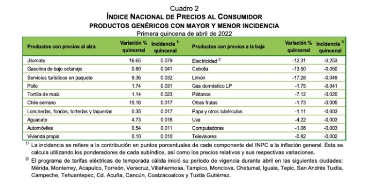 En ese sentido, el instituto Nacional de Estadística y Geografía (Inegi), reveló a través de gráficas cómo fue el comportamiento de la inflación sólo durante la primera quincena del cuarto mes del año, al tiempo de resaltar cuáles fueron los productos y servicios que contribuyeron a registrar estos valores.