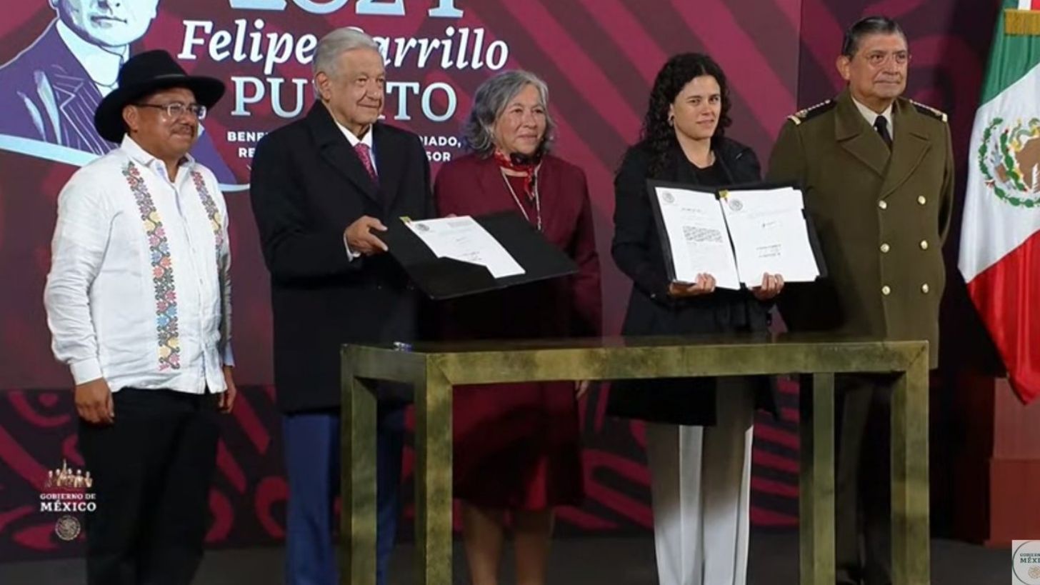 Ante los medios de comunicación reunidos en la que será la última 'mañanera' de López Obrador, el mandatario tabasqueño firmó dos Reformas a la Constitución: La primera, que autoriza el traspaso de la Guardia Nacional (GN) a la Secretaría de Defensa Nacional (Sedena); y la segunda, que es sobre el reconocimiento y los derechos de los pueblos indígenas y afromexicanos. Estas serán las iniciativas con las que se despide el tabasqueño.