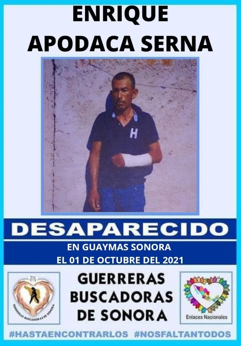 El grupo de mujeres añadió que la última vez que la familia de Enrique supo algo de él fue el viernes 1 de octubre del año en curso, cuando salió de su domicilio localizado en Guaymas y ya no regresó, perdiéndose todo contacto con él.