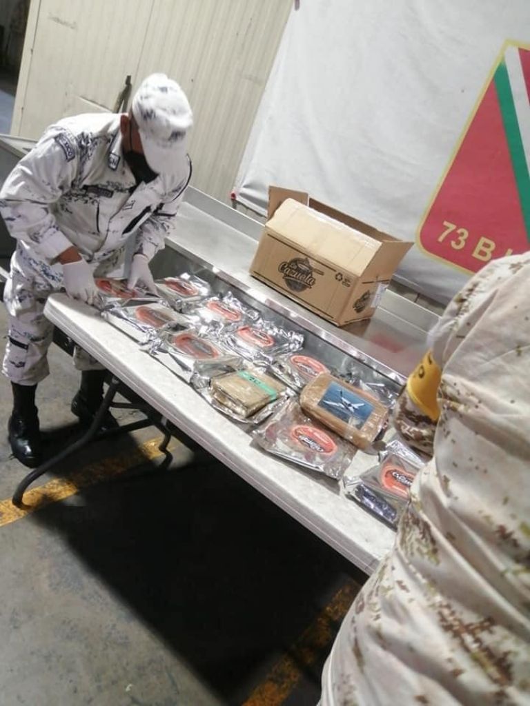 Las tres personas viajaban a bordo de un camión de carga y tras una inspección a la unidad les fueron asegurados varios paquetes de plástico metálico con supuesta carne seca, sin embargo, contenían en su interior 15 kilos 100 gramos de cocaína.