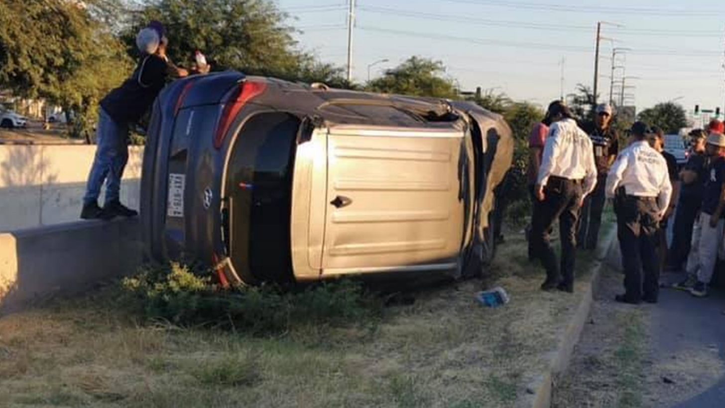 El hecho se reportó a las autoridades minutos después de las 17:00 horas, donde dos automóviles participaron en un percance de tránsito que derivó en la volcadura de una de las unidades, pero por fortuna no hubo personas lesionadas.