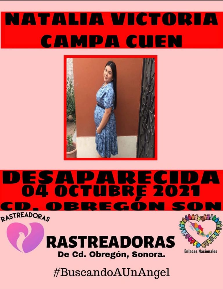 Se trata de Natalia Victoria Campa Cuen, de 19 años de edad, quien cuenta con 8 meses embarazo y que está extraviada desde el pasado lunes 4 de octubre después de que salió sola rumbo a un hospital alrededor de las 5:00 horas.