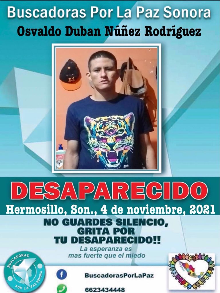 Hermosillo, Sonora.- Desde hace varios días que nada se sabe sobre el paradero de Osvaldo Dubán Núñez Rodríguez, vecino de Hermosillo, Sonora, y por ello su familia solicita la colaboración de la comunidad para encontrarlo sano y salvo.