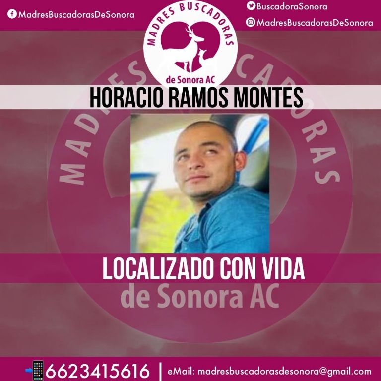 Nogales, Sonora.- El pasado lunes, el colectivo Madres Buscadoras de Sonora reveló que Horacio Ramos Montes fue localizado con vida, luego de que su familia lo reportara como desaparecido en la frontera de Sonora y Arizona.
