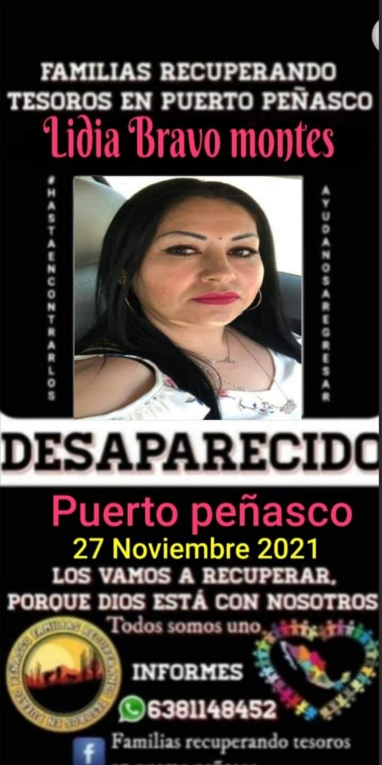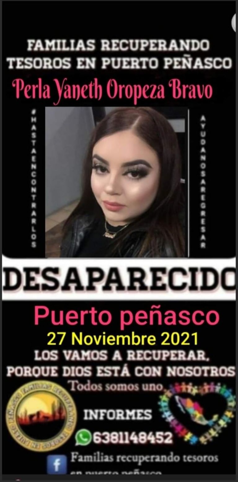 Asimismo, colectivos de mujeres como Familias Recuperando Tesoros en Puerto Peñasco han apoyado a la causa compartiendo las fichas de búsqueda a través de redes sociales. Asimismo, puso a disposición su número: 638 114 8452.